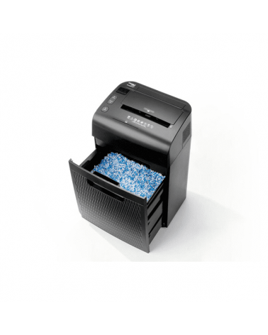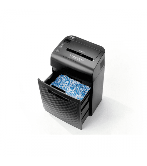 Destructeurs de documents de bureau: performance et confort garantis sur le poste de travail. La fonction d'alimentation automatique permet l'introduction automatique de piles de papier entières ( 120 feuilles de 80 g/m²). Destruction agréable et écologique des documents sans huilage des rouleaux de coupe. Destruction manuelle: 9 feuilles. Niveau de sécurité: P-4/F-2/T-5/E-4. Corbeille de 28L. Dimensions: H585 x L376 xP280 mm.