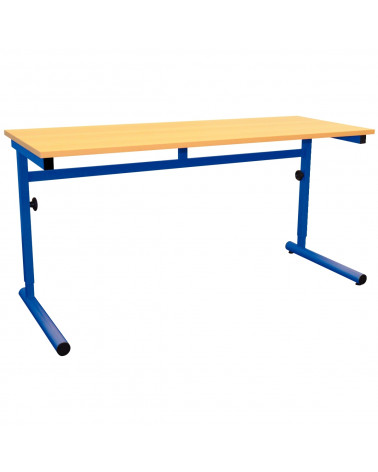 Table maternelle réglable à dégagement latéral biplace 130x50cm T4 à T6 bleu